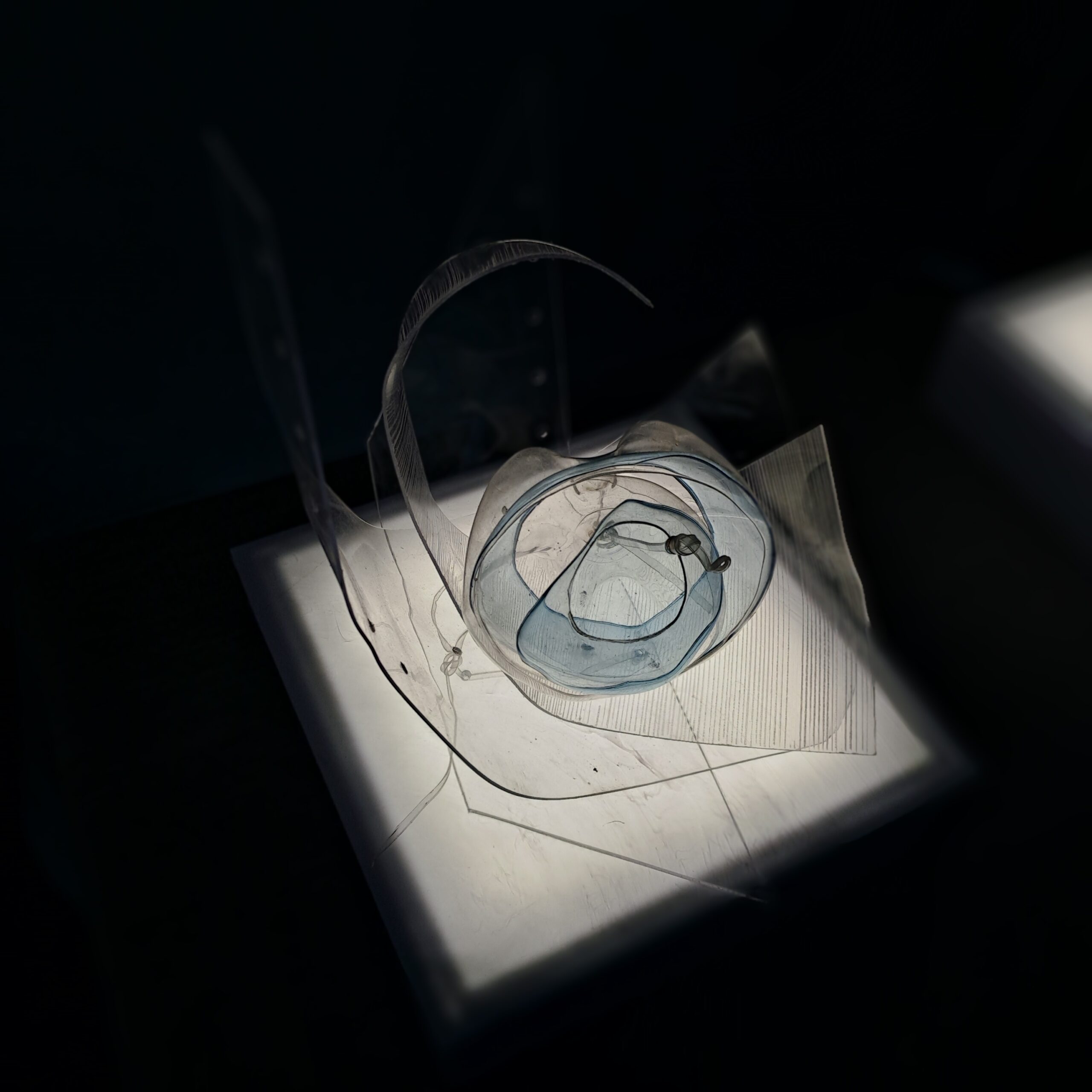 La obra explora la tensión entre estructura y transparencia, entre forma y energía.