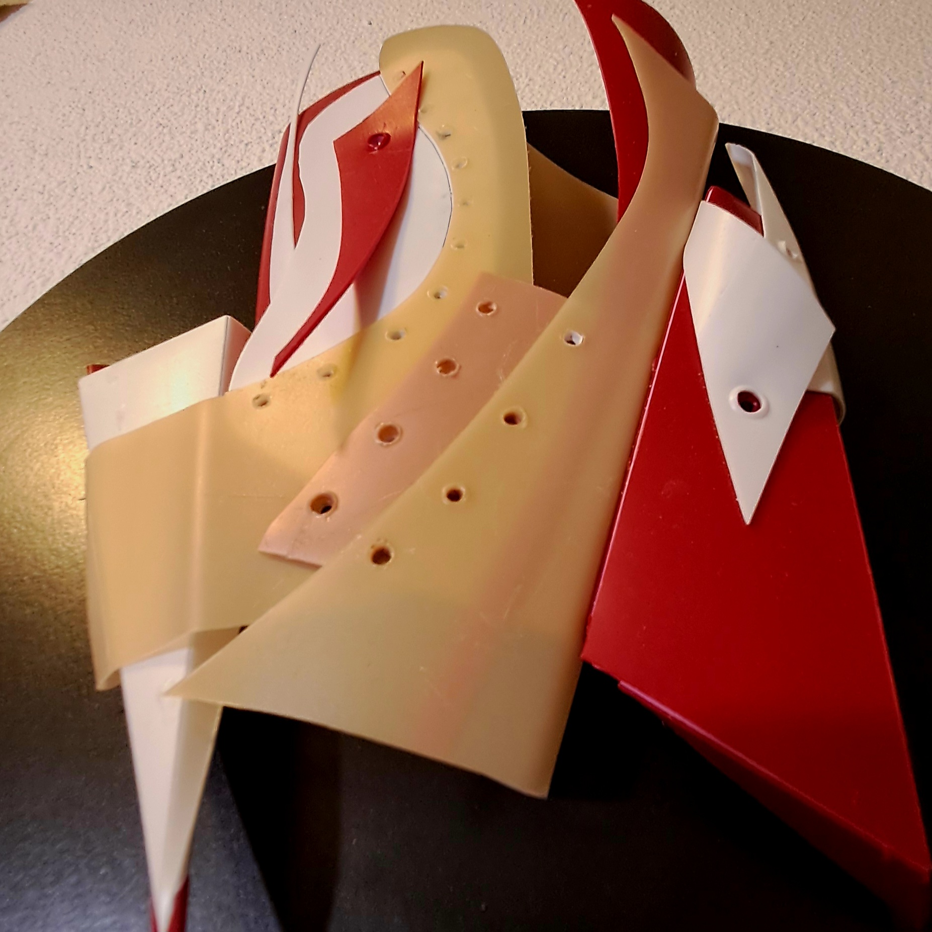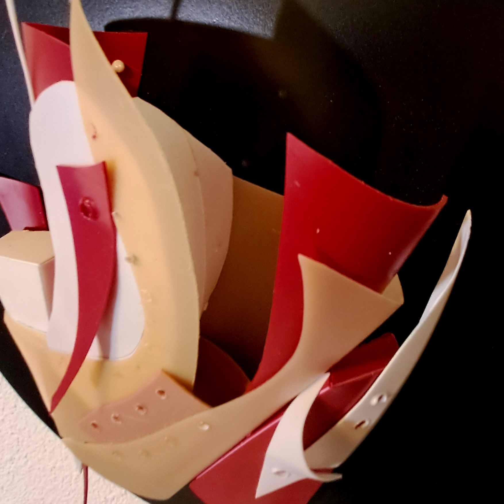 Los fragmentos plásticos se pliegan y ondulan como cuerpos en una danza cotidiana.
