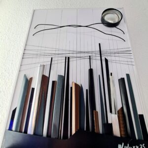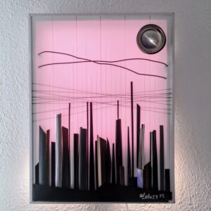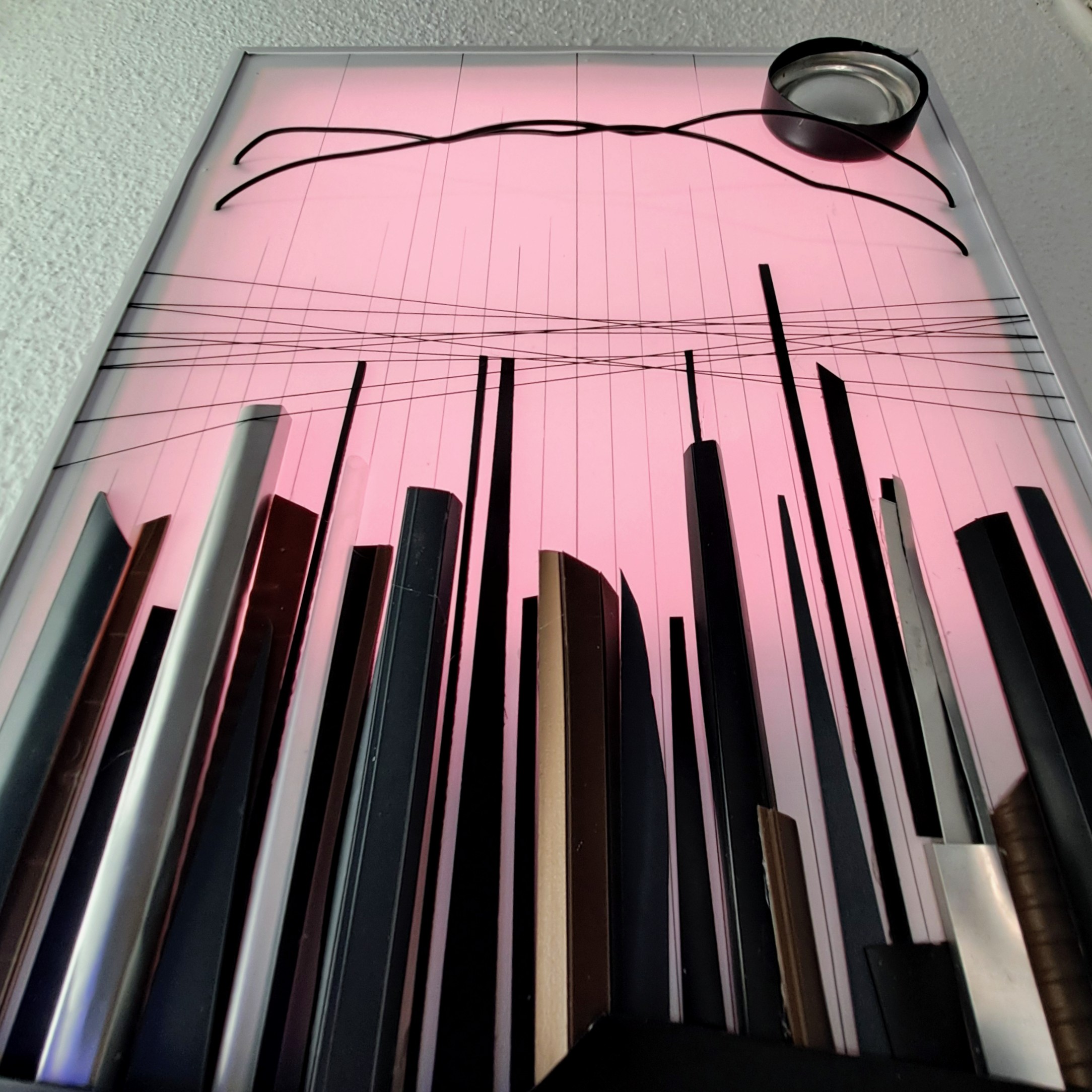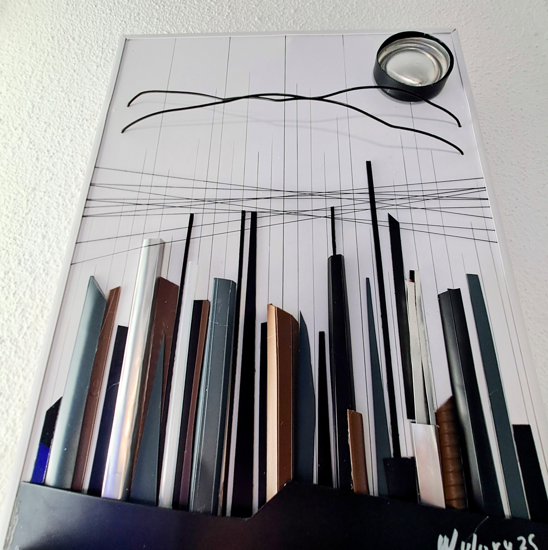 No es un recuerdo quieto, sino una memoria vibrante, que late entre la luz metálica y la fragilidad plástica, como si el aire sostuviera un canto detenido, un eco vertical que se niega a desaparecer.