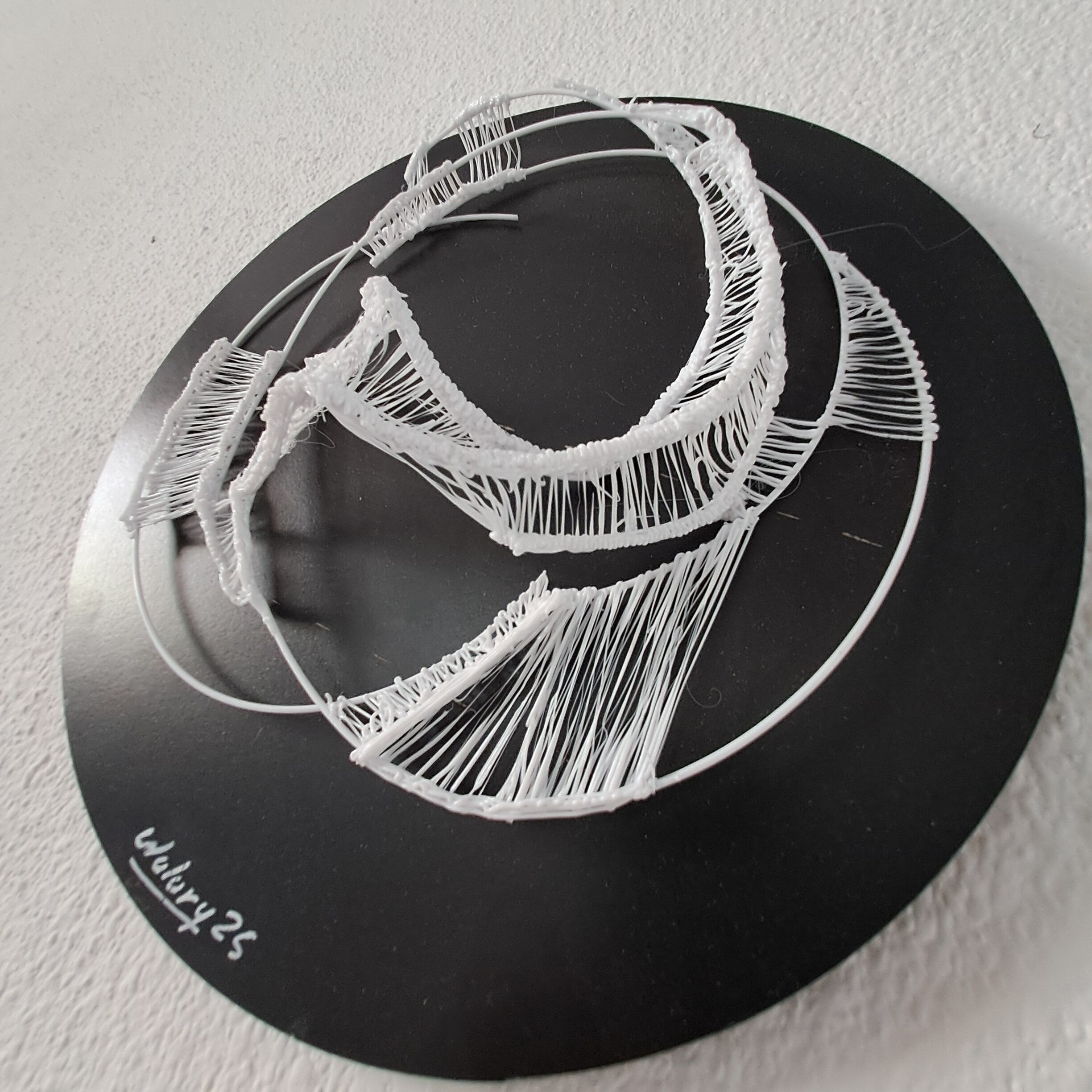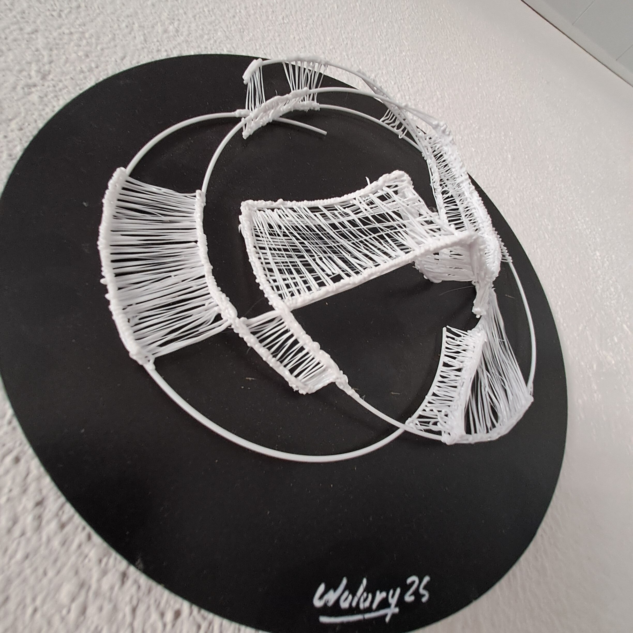 “Órbita Residual” propone una contemplación del residuo como energía en deriva, un sistema que, aunque descentrado, sigue generando ritmo y forma. En la fragilidad de sus tramas late una pregunta sobre la permanencia de lo creado y la posibilidad de belleza en los despojos del ciclo material.