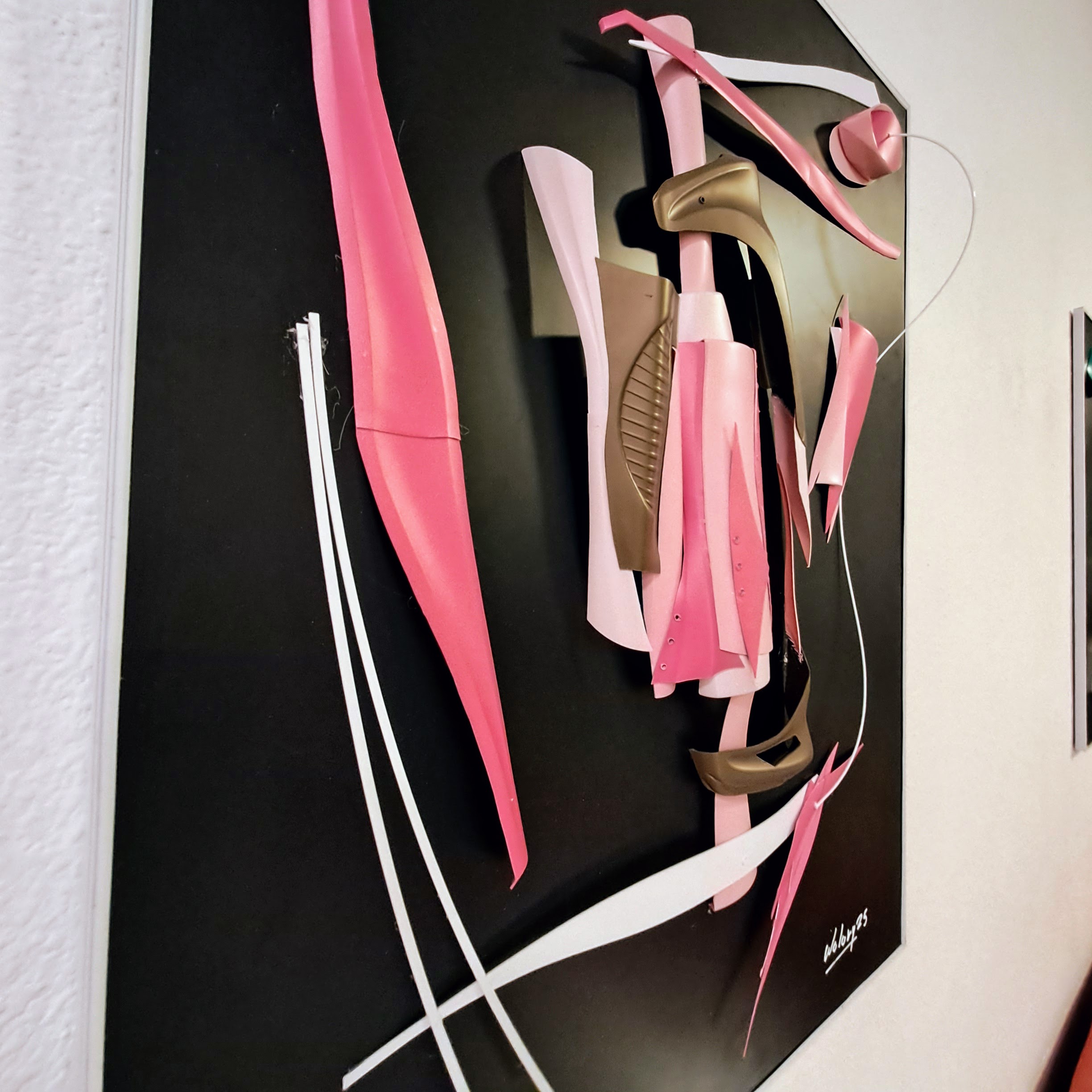 El rosa, como un eco de lo vivo, acaricia la dureza de lo metálico, y en ese roce surge una tensión erótica: fragilidad y fuerza, dulzura y filo, lo oculto y lo revelado. “Pétalo Secreto” no muestra, sugiere; no grita, murmura. Es la huella de un deseo que se despliega en lo secreto.