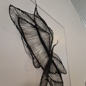 Como el registro frágil de un insecto detenido en el aire, la obra captura lo efímero: alas que ya no baten, pero que aún resuenan en la memoria del vacío. Su trazo se vuelve huella suspendida, eco de un movimiento ausente, donde lo vivo se transforma en sombra y lo orgánico en arquitectura etérea.
